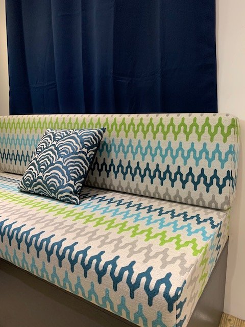 Vous avez besoin de vous créer une identité forte et de proposer une offre différenciée ? Contactez-nous pour plus d’informations. Nous pouvons imprimer des rideaux uniques avec votre logo, concevoir de nouvelles banquettes avec découpe de mousse polyéther ou haute résilience, confectionner l’habillage des assises et dossiers avec housses en skaï ou encore créer des coussins assortis aux autres éléments. Nous prenons en charge votre projet de rénovation de A à Z.